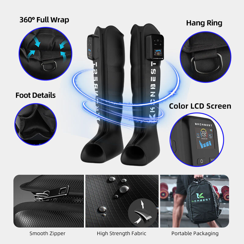 Top-rated Airbag Pressure: Maximum pressure reaches up to 240 mmHg, through the inflation and compression of the airbags around the legs, a cyclic pressure is created from the distal to the proximal ends. This promotes blood and lymphatic circulation, thereby alleviating pain and facilitating rapid muscle recovery.